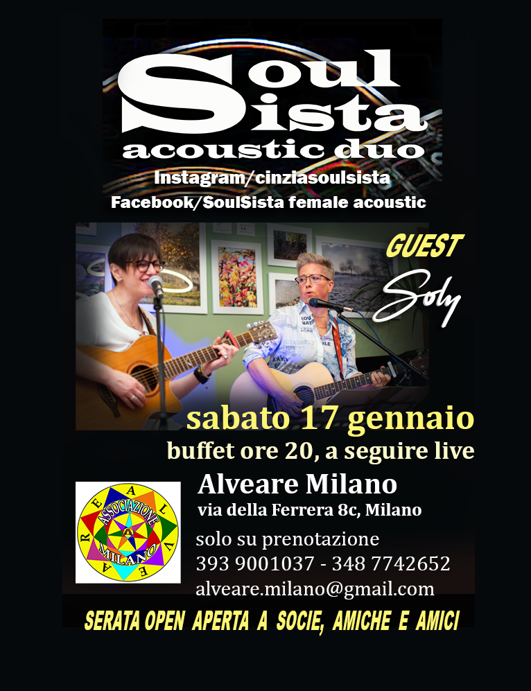 Le SoulSista acoustic duo, Cinzia Boscaro e Silvia Ricci, tornano all'Alveare con il loro repertorio internazionale e italiano!
